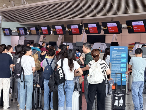 國慶假期,出行目的地主要集中在北京、成都、廣州、三亞、香港,以及東京、大阪、首爾、新加坡等城市。為滿足旅客多元化出行需求,杭州機(jī)場在國慶前夕恢復(fù)“杭州—萬象”航線,新增“杭州—雅加達(dá)”航線,并加密新加坡、吉隆坡等境外熱門航線。針對(duì)大客流,杭州機(jī)場在早晚高峰時(shí)段增設(shè)值機(jī)柜臺(tái)及安檢通道,盡量縮短排隊(duì)等候時(shí)間。同時(shí)根據(jù)地面交通出行分時(shí)流量情況,聯(lián)動(dòng)出租車、網(wǎng)約車運(yùn)營單位,確保高峰期間運(yùn)力充足。