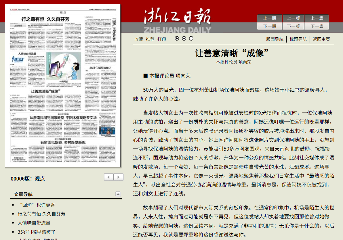 10月14日,浙江日報(bào)報(bào)道《讓善意清晰“成像”》。